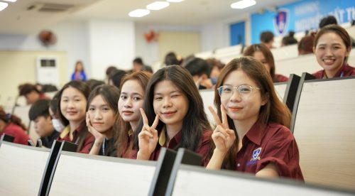 Tân sinh viên tại giảng đường mà Khoa chào đón