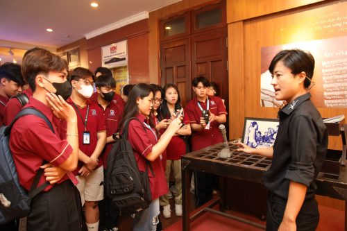 Trước đó, Sinh viên được nghe chị Hải Linh và Anh Tuấn thuyết minh rất hay về những hiện vật và đặc biệt là những dòng âm thanh từ band tư liệu quý giá được thu vào ngày 30/4/1975.