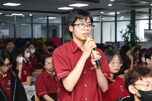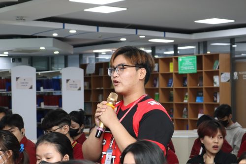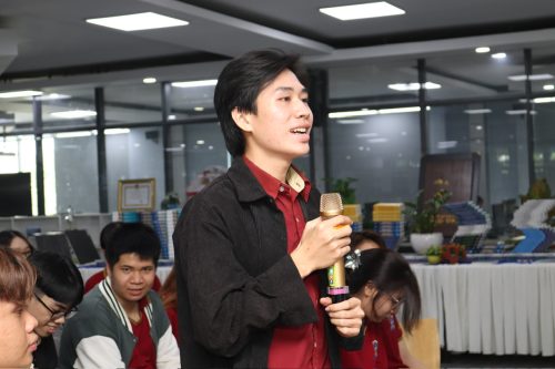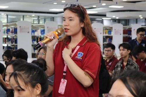 Sinh viên Khoa Truyền thông sáng tạo đặt câu hỏi tại seminar cơ hội việc làm và xu hướng tuyển dụng sinh viên truyền thông