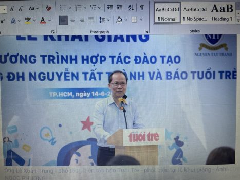 54 sinh viên Khoa Truyền thông sáng tạo, Trường Đại học Nguyễn Tất Thành đại diện cho gần 200 sinh viên thuộc đối tượng đào tạo một số học phần thực hành trực tiếp tại Báo Tuổi Trẻ đã có buổi học đầu tiên tại toà soạn. Lễ khai giảng diễn ra gọn nhẹ nhưng trang trọng và tạo hào hứng cho các em. Sinh viên thấy họ không chỉ được chào đón mà còn được tôn trọng.