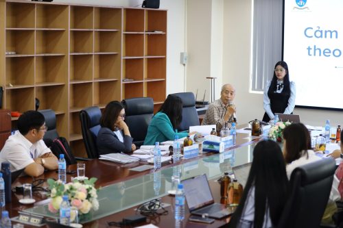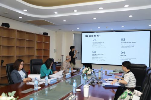 Sinh viên báo cáo khóa luận trước hội đồng và được đóng góp nhiều ý kiến