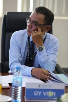 Chủ tịch Hội đồng chấm bảo vệ Khóa luận tốt nghiêp do PGS.TS. GVCC Vũ Quang Hào, Trưởng khoa cùng các thành viên.