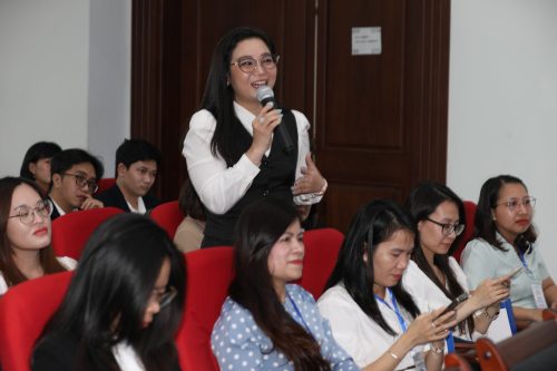 Th.S Nguyễn Thị Huỳnh Giao, GV Khoa Truyền thông sáng tạo trao đổi ý kiến tại hội thảo