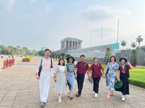 Cô trò trong khuôn viên Lăng Chủ tịch Hồ Chí Minh