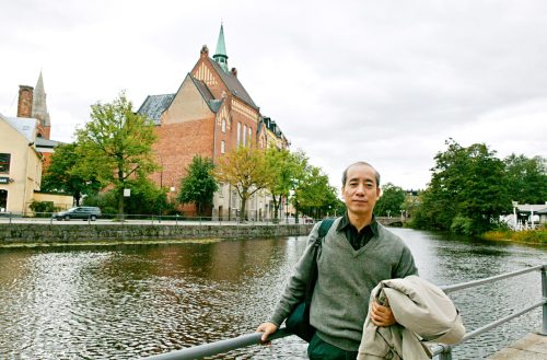 Học viên Vũ Quang Hào đi học tại một tòa Báo Thụy Điển 2006 (phía sau là tòa báo)