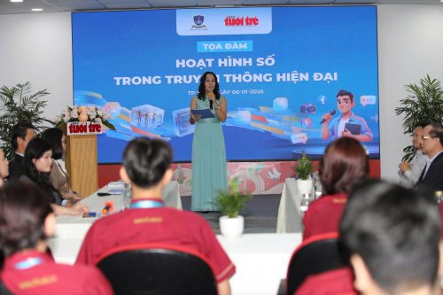 Gần 100 sinh viên và giảng viên Khoa Truyền thông sáng tạo đã tham dự Tọa đàm “Hoạt hình số trong truyền thông hiện đại” do Khoa và Báo Tuổi Trẻ đồng tổ chức hôm 6/1/2026.
