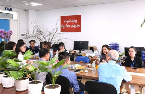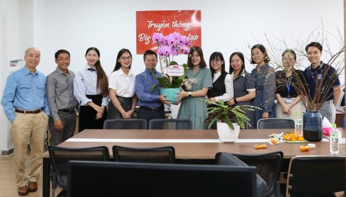 Đại diện cho Báo Tuổi Trẻ, Nhà báo Bùi Tiến Dũng, Trưởng Ban Giáo dục, Trưởng Phòng hợp tác đào tạo cùng nhóm Nhà báo đang công tác tại toà soạn đến chúc mừng Khoa Truyền thông sáng tạo.