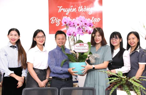 Đại diện Báo Tuổi trẻ chúc mừng Khoa Truyền thông sáng tạo nhân dịp 20/11