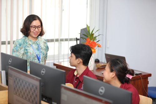 ThS. Đặng Như Thảo, Phó trưởng Khoa Truyền thông Sáng tạo chia sẻ với sinh viên về những thuận tiện cho các em khi phòng máy đưa vào hoạt động