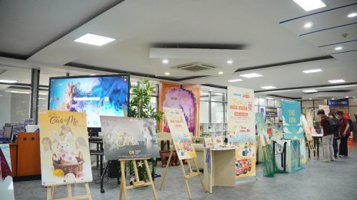 Các sản phẩm được sắp xếp theo tuyến, giúp người xem dễ dàng theo dõi và tiếp cận từng sản phẩm đồ án. Điểm chung dễ nhận thấy là hình ảnh không còn mang tính minh họa đơn thuần. Nhiều sản phẩm tiết chế chữ, tập trung vào bố cục, màu sắc và biểu tượng thị giác để gợi mở nội dung. Cách kể chuyện gián tiếp này cho thấy sinh viên đã ý thức rõ hơn về vai trò của công chúng trong truyền thông hiện đại, nơi người xem không chỉ tiếp nhận thông tin một chiều mà còn tham gia vào quá trình đọc hiểu hình ảnh.