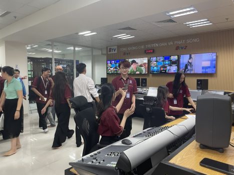 Các em được các Nhà báo, Đạo diễn, Biên tập viên, Kỹ thuật viên, Phát thanh viên hướng dẫn quy trình vận hành Nhà hát 500 chỗ ngồi, các phòng thu, dựng, biên tập, livestream…nhìn những thiết bị kỹ thuật về máy quay, phòng dựng, điều phối, hệ thống đèn… các em ngắm nhìn về những thiết bị hiện đại cũng như một môi trường hoạt động chuyên nghiệp. Nhiều sinh viên đã bọc lộ cảm xúc rằng “ em đã thỏa được ước mơ” một lần ngồi trong trường quay và lên hình tại Nhà Đài hiện đại.
