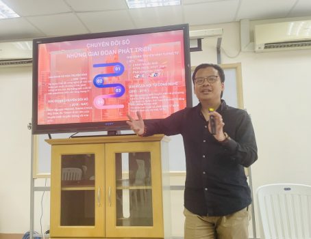 Nhà báo Ngô Trần Thịnh trình diễn về sản xuất sản phẩm số .