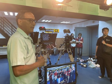 50 sinh viên năm nhất ngành Truyền thông đa phương tiện của Khoa truyền thông sáng tạo lần đầu tiên được tiếp cận hệ thống thiết bị cũng như hoạt động sản xuất truyền hình tại Đài Truyền hình Thành phố Hồ Chí Minh, sáng 12/12/2024.