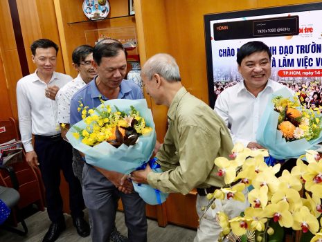 Các Nhà báo-Giảng viên của Báo Tuổi Trẻ nhận hoa chúc mừng của Trường ĐH Nguyễn Tất Thành nhân Ngày Nhà giáo VN 20/11