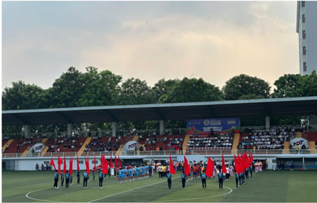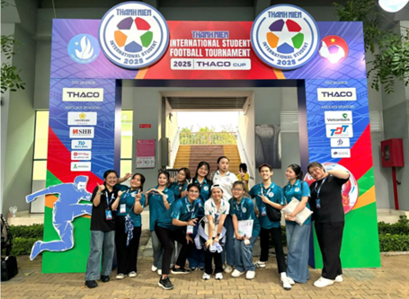 Tham gia hỗ trợ chạy chương trình cho chung kết Giải bóng đá Thanh Niên sinh viên quốc tế 2025 Cúp Thaco (nguồn: SV Khoa TTST thực tập tại Báo Thanh Niên cung cấp)