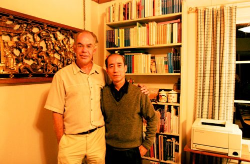 Thầy Clas Thor (bên trái) và Vũ Quang Hào tại phòng làm việc nhà riêng Thầy ở Orebro,Thụy Điển 10/2006