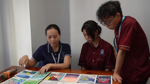Giảng viên hướng dẫn sinh viên về nguyên lý bố cục tạo hình, nguyên lý phối màu trong trang trí