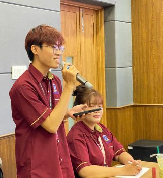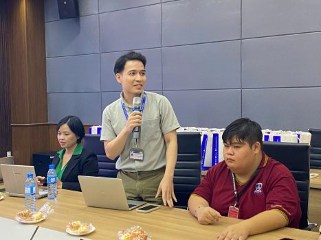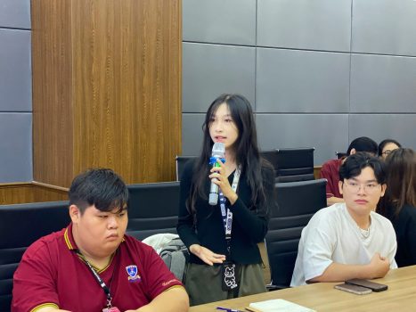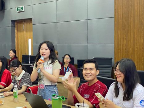 Sinh viên Trương Ngọc Thắm, lớp trưởng 22DTD1A chia sẻ một số kỹ năng quản lý lớp với BCS khóa K24