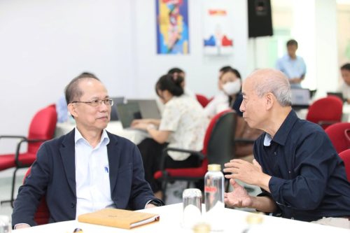 Nhà báo Lê Xuân Trung, Phó Tổng biên tập Báo Tuổi trẻ, PGS.TS. GVCC Vũ Quang Hào, Trưởng Khoa Truyền thông sáng tạo- NTTU cùng gần 40 giảng viên, nhà báo đang công tác tại hai đơn vị.