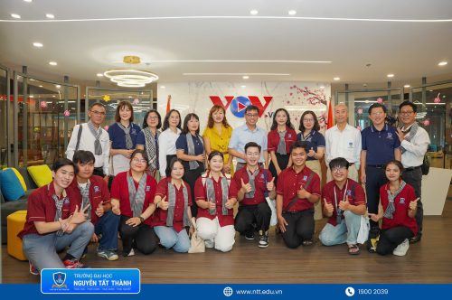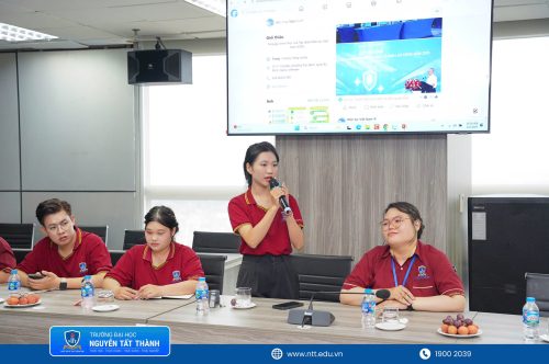 Không gian hiện đại và trang nghiêm bất ngờ đón chào chúng em, như đưa cả đoàn vào một thế giới hoàn toàn khác biệt. Một chi tiết khá thú vị khi trên màn hình trình chiếu xuất hiện dòng chữ chào mừng đoàn sinh viên Khoa Truyền thông sáng tạo (Trường Đại học Nguyễn Tất Thành), và chính khoảnh khắc ấy, một niềm tự hào trào dâng đến nghẹn ngào khi được một tập đoàn lớn đón tiếp đoàn một cách trang trọng và kỹ lưỡng, chúng tôi hiểu rằng mình đang đứng trước một “bài học” quan trọng hơn bất kỳ giáo trình nào.