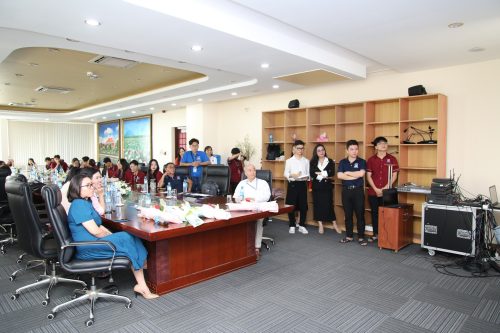 Giảng viên Khoa chụp ảnh lưu niệm cùng sinh viên trong buổi lễ ra mắt cầu lạc bộ và